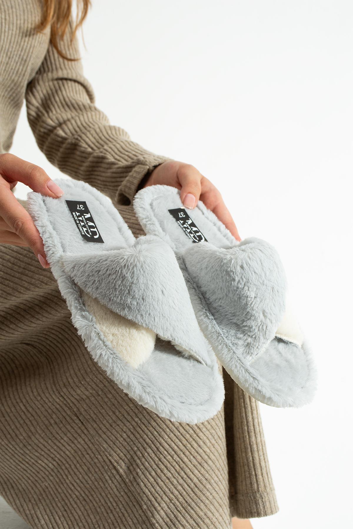 Gri Kışlık Dikişli Taban Peluş Burgu Terlik Sessiz Taban Ev Terliği (Taban Kalınlaştırılmıştır)